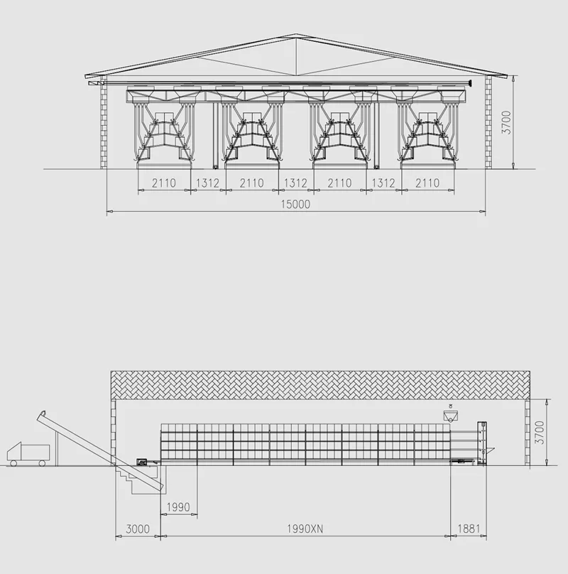 Rendering of a Standard Four-row, Four-story Laying Hen House